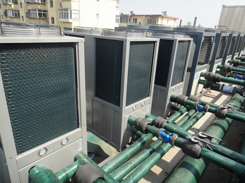 该工程为河北秦皇岛海军外协楼项目,项目需求为空调和热水,配置杭宁低温型模块式风冷热泵机组